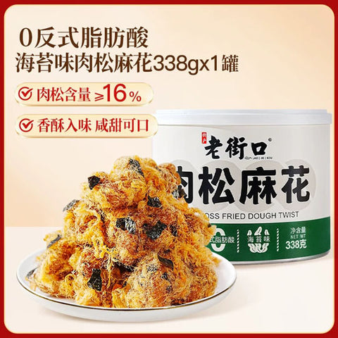 商品名称:【老街口】肉松麻花338g/罐 肉松含量≥16% 香辣味 海苔味可选 英国肉松小麻花伦敦