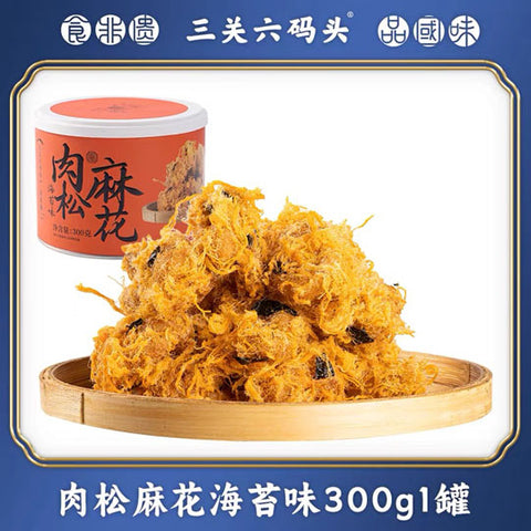 商品名称: 【三关六码头】肉松麻花300g/罐 海苔味 浙江老字号 董生阳监制 英国肉松红糖麻花伦敦